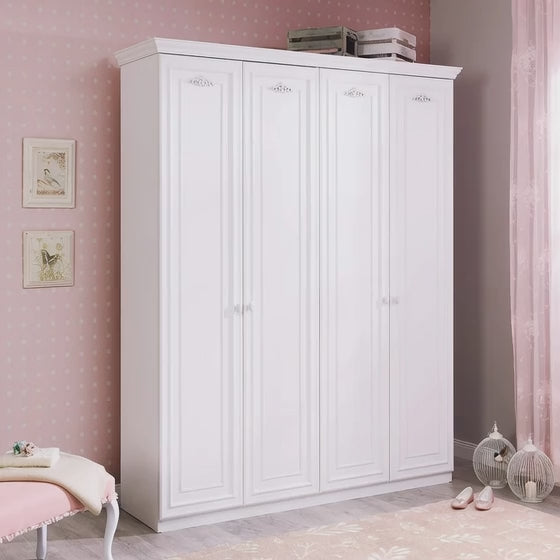 Garderoba Rustic White me 4 dyer është një zgjidhje funksionale dhe estetike për një organizim të rregullt të rrobave dhe aksesorëve tuaj.