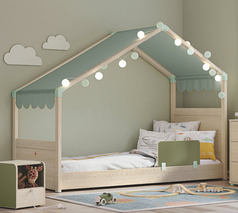 Me parmakë mbrojtës në tre anë dhe një dizajn të ulët afër tokës, ky shtrat synon të ofrojë një përvojë të sigurt gjumi për fëmijën tuaj.