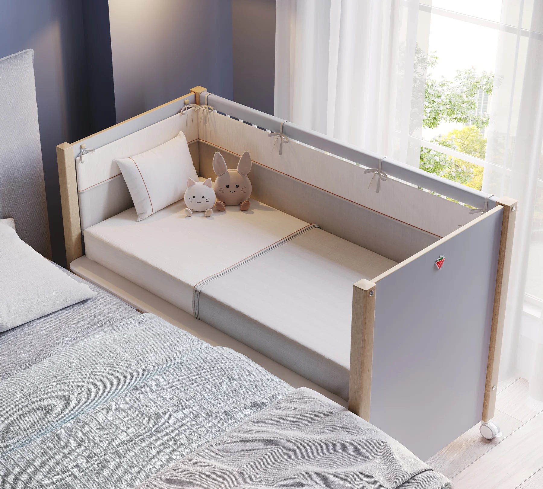 Krevate për foshnja me rrota; me strukturën e saj me 4 rrota që rrotullohen 360°, ofron përdorim praktik dhe përfitimin e funksionalitetit të shumëfishtë falë mbrojtëses me ngritje, që i mundëson nënës të arrijë lehtësisht te foshnja e saj. Dy nga rrotat janë të pajisura me fren për të siguruar që krevati të qëndrojë i palëvizshëm kur është e nevojshme. Falë rrotave, produkti mund të zhvendoset lehtësisht në vendin e dëshiruar brenda dhomës.