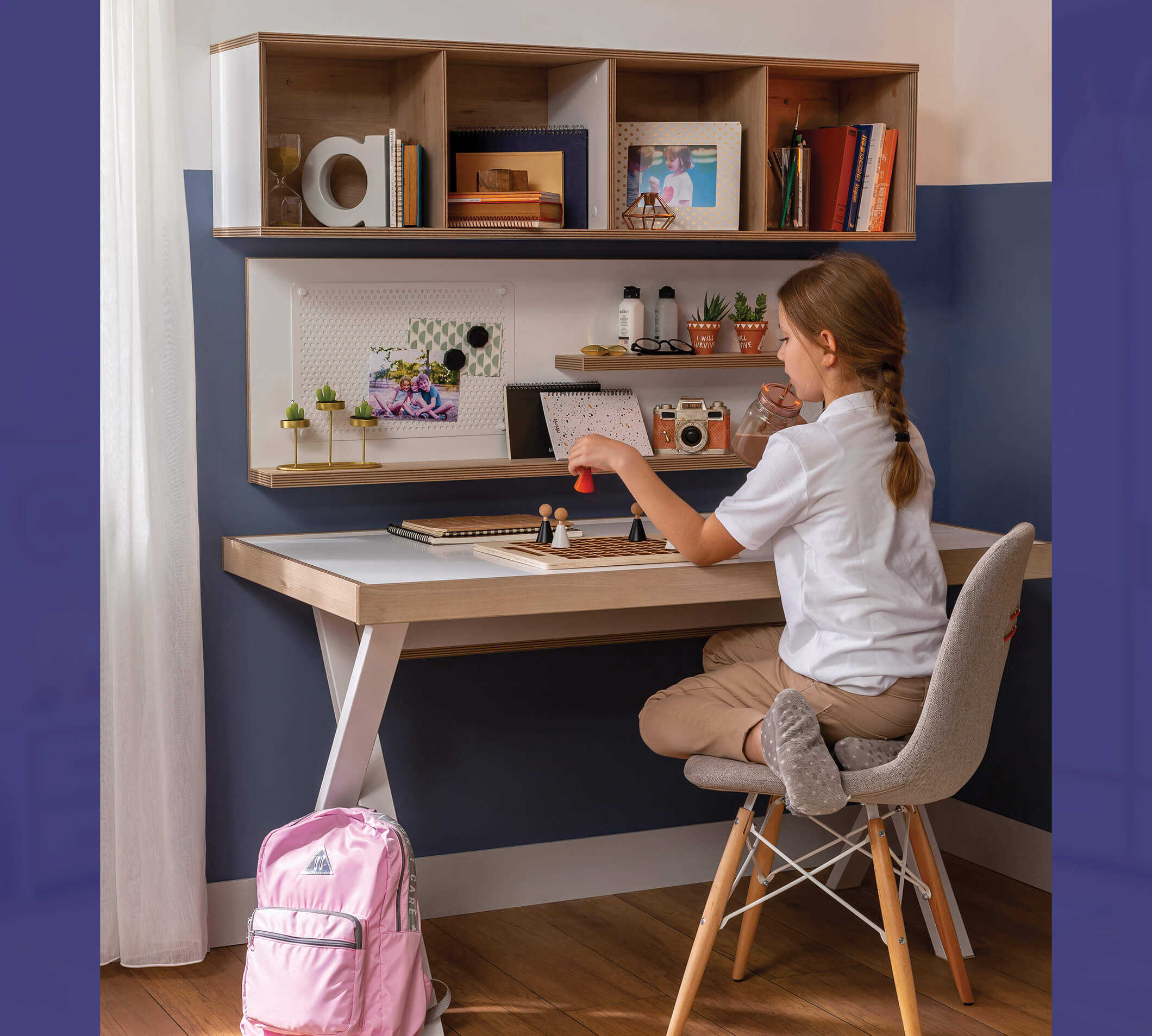 Tavolina e Madhe e Punës Modera është krijuar për të ofruar një hapësirë pune të përshtatshme dhe elegante për të rinjtë që kërkojnë funksionalitet dhe estetikë. Dizajni i saj modern dhe i pastër sjell harmoni në dhomën tuaj, duke ofruar gjithashtu shumë mundësi për organizimin dhe ruajtjen e gjërave.
