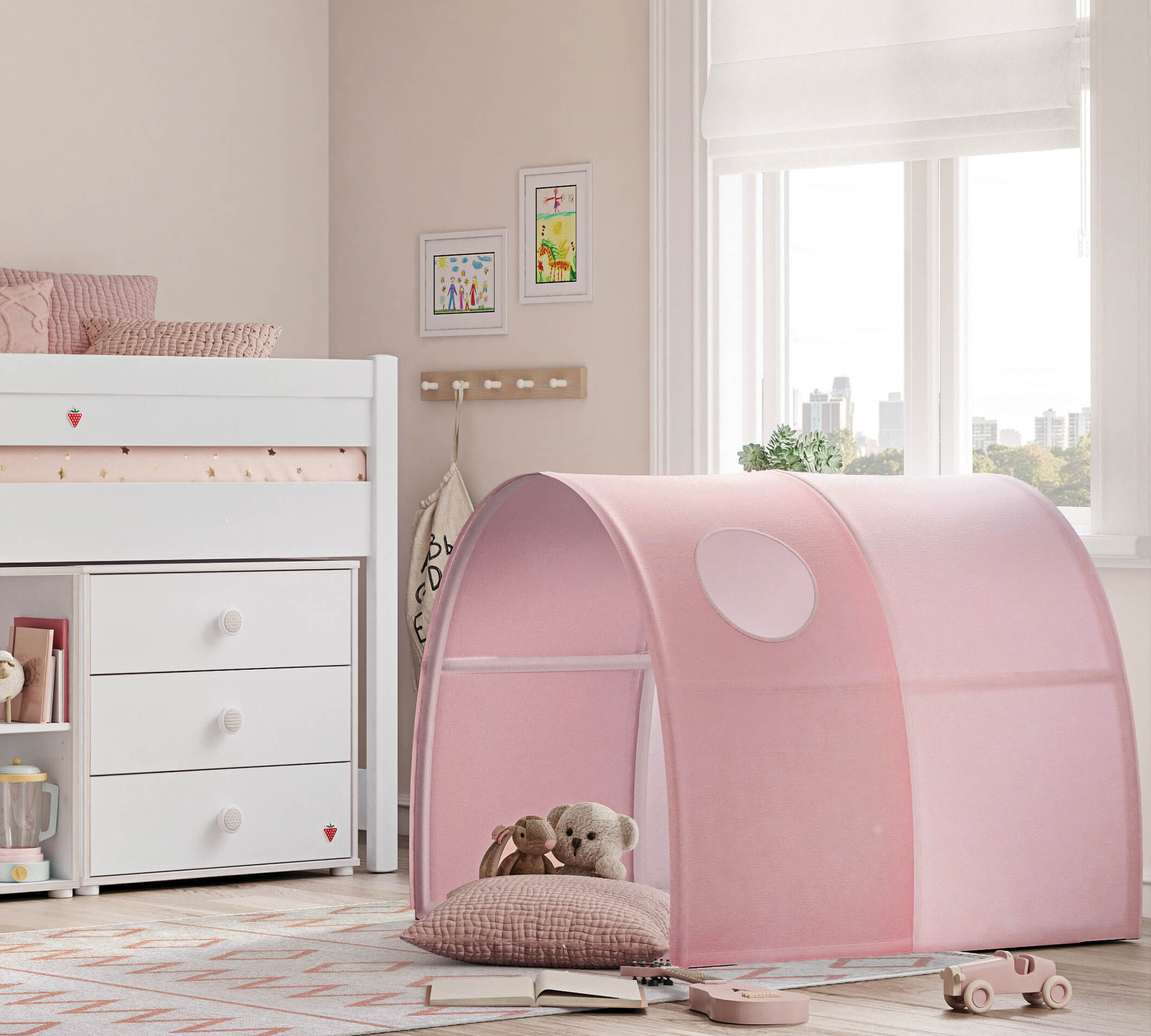 Me Çadren tunel te projektuar në ngjyrën e gjelbër që sjell efektin qetësues dhe relaksues të natyrës, mund të krijojësh një hapësirë unike dhe zhvilluese për fëmijët tënd. Duke qenë e përshtatshme për krevatin e mesme dhe dyshemenë e dhomës, mund të hapësh dyert e orëve të gjumit ose orëve të lojërave për të krijuar hapësirë për kreativitet. Çadra e Tunelit, e cila mund të instalohet lehtësisht me lidhësat plastik, mund të lahet në lavatriçe në programin e butë të larjes në temperaturën 30 gradë dhe mund të hiqet me temperaturë të ndjeshme.