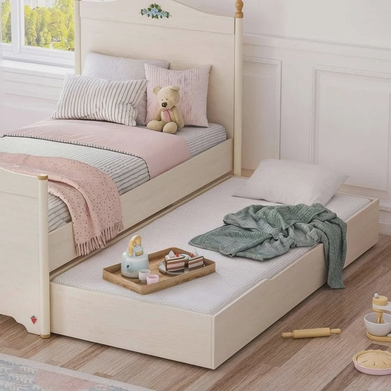 Krevati Flora New është elegante dhe gjithashtu mikpritës. Me shtimin e Krevatit të Poshtëm Flora New, ju jeni të lirë të pranoni miqtë tuaj në çdo kohë. Krevatet e Poshtme, me kapacitetin maksimal të mbajtjes 130 kg dhe madhësinë e krevatit të brendshëm 90x190 cm, mund të përdoren për shumë vite me konstruksionin e tyre të fortë.