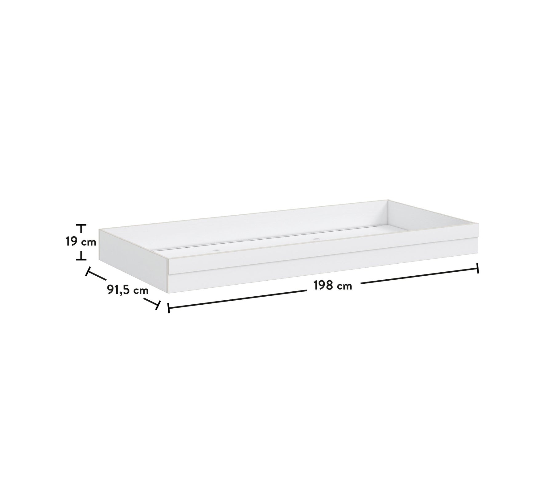 Gjerësia: 198 cm | Lartësia: 19 cm | Thellesi: 91,5 cm