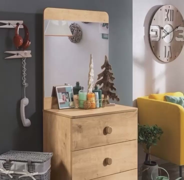 Pasqyra Mocha, pjesë e koleksionit Mocha, sjell një ndjesi natyrale në ambientet rinore falë pamjes së drurit të papërpunuar dhe dizajnit të saj të thjeshtë e elegant. E pasuruar me kornizë bisote, kjo pasqyrë është prodhuar me materiale cilësore që ofrojnë siguri të shtuar.