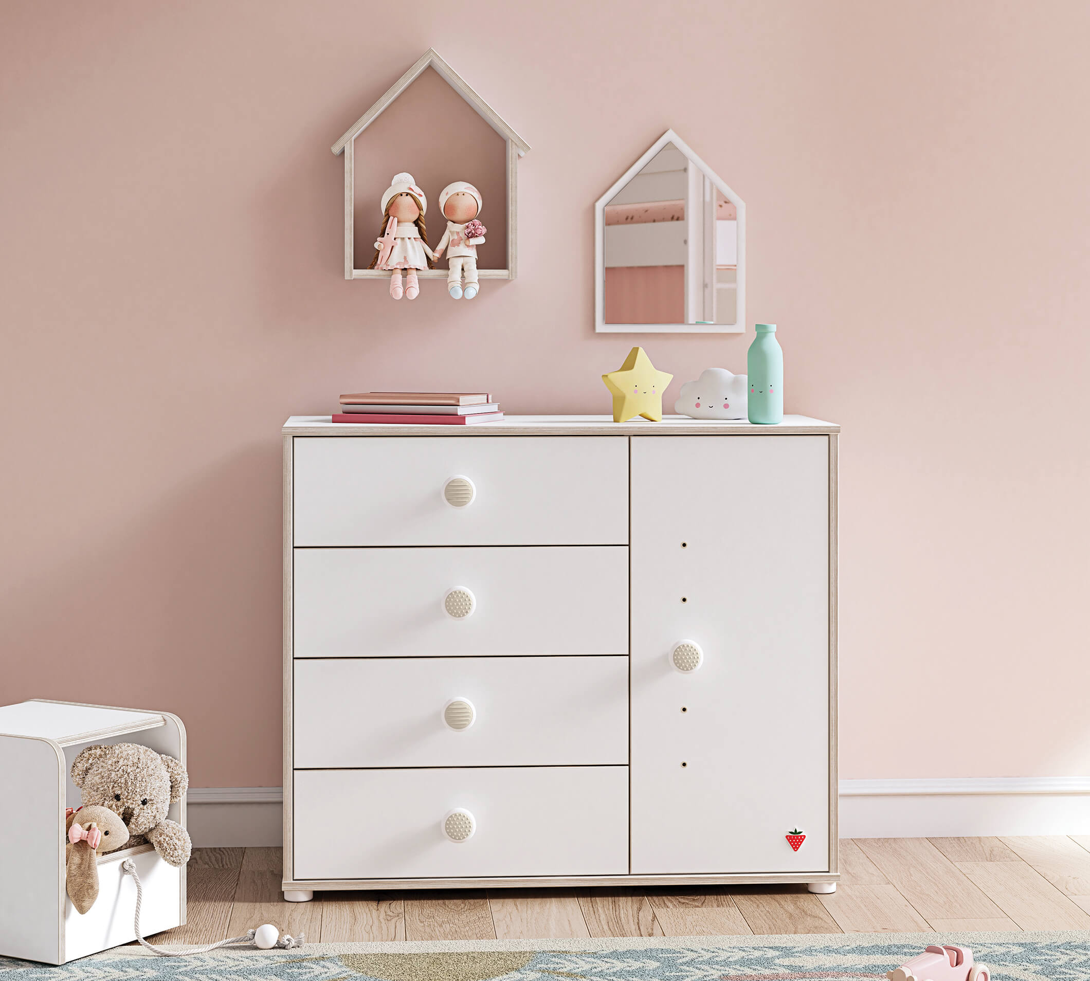 Dollapi dhe komoja qe bleme per djalin jane super te mira dhe te bukura dhe na kane plotesuar dhomen e bebushit tone