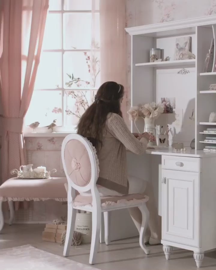 Tavolina e Punës Romantik është zgjedhja perfekte për dhomën e fëmijës tuaj, duke ofruar hapësirë të bollshme dhe organizim të shkëlqyer. Me sirtarë të gjerë dhe dollap me kapak, kjo tavolinë siguron një ambient të rregullt dhe të pastër për fëmijën tuaj, duke mbajtur mjetet dhe pajisjet e shkollës të organizuara.