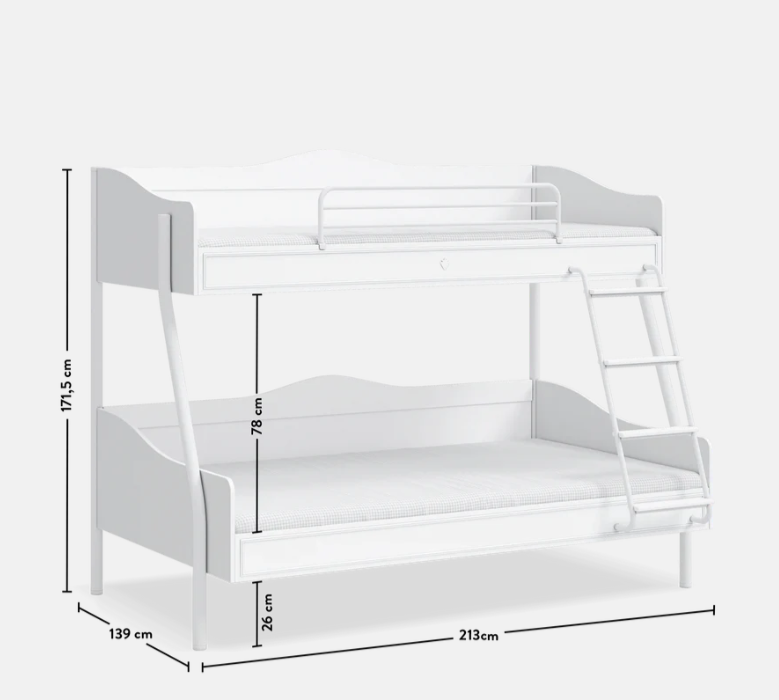 Çdo zonë gjumi ka një kapacitet maksimal peshe prej 130 kg, dhe dimensionet e dyshekut janë 90x200 cm për pjesën e sipërme dhe 120x200 cm për pjesën e poshtme. Këto krevate janë ndërtuar për të zgjatur për shumë vite.