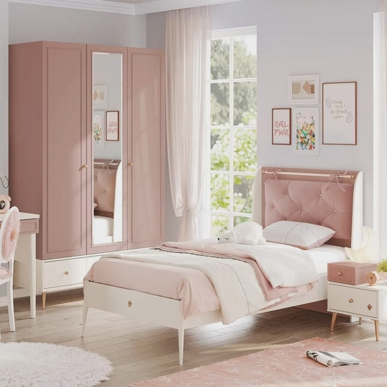 Krevati Romantica sjell një atmosferë të ngrohtë dhe të ëmbël në dhomat e fëmijëve, duke kombinuar elegancën me funksionalitetin.