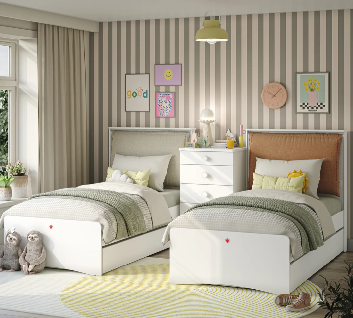 Koleksioni Varia e bardhe sjell linja të pastra, tonin Bardhë Qumështi dhe përdorim të sigurt. Sipërfaqet me melaminë E1 dhe bandat 2 mm ofrojnë higjienë dhe qëndrueshmëri, ndërsa dizajni i certifikuar TÜV GS/TSE, lidhja me murin dhe mbyllja e butë sigurojnë stabilitet maksimal.
