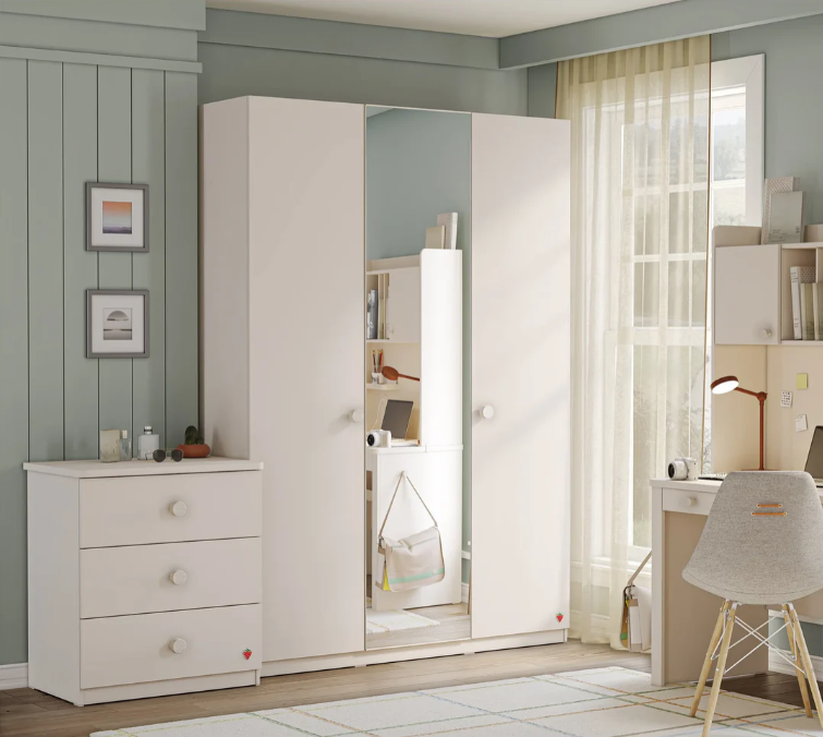 Dollapi me 3 dyer dhe pasqyrë Varia është krijuar për t’ju ofruar hapësirë të bollshme dhe të organizuar. Me ndarje të shumta raftesh dhe hapësirë për varëse, ju ndihmon të sistemoni me lehtësi rrobat dhe sendet tuaja.