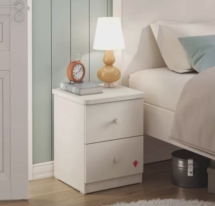 Komodina Varia, me linja minimale, ofron funksionalitet dhe estetikë në dhomën tuaj të gjumit. Me dy sirtarë që ndihmojnë të mbani sendet të organizuara, ata janë të pajisur me mekanizëm të qetë dhe mbyllje të butë për përdorim të lehtë.