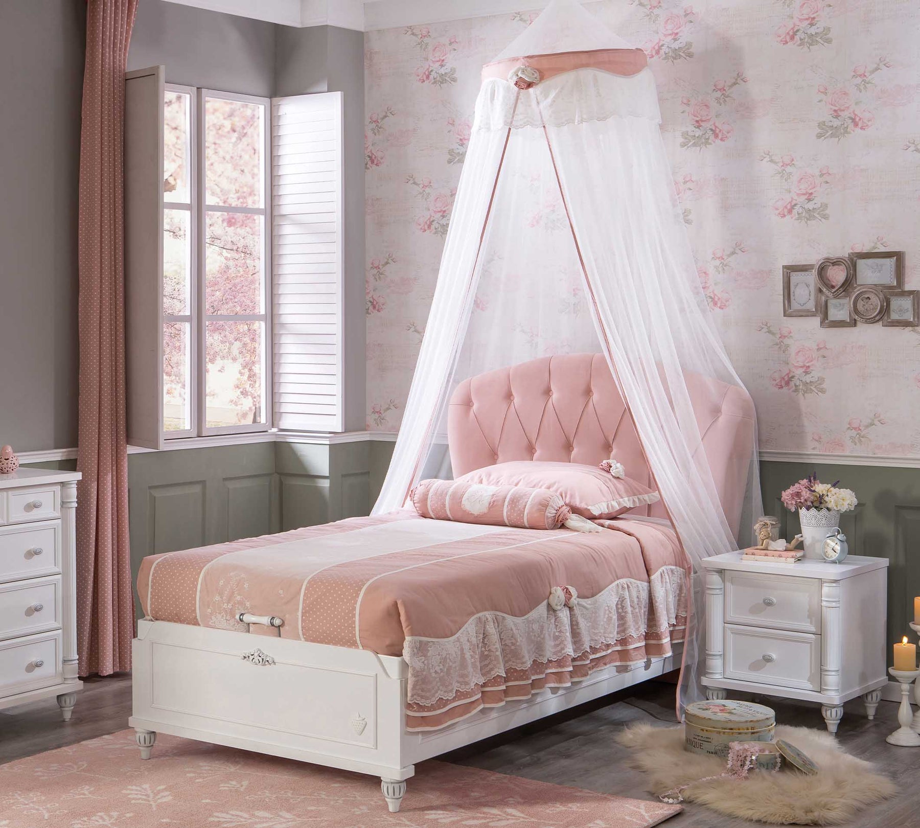 Romantic Shtrat (koka e shtratit me shtof) me Depo  (100x200 cm)